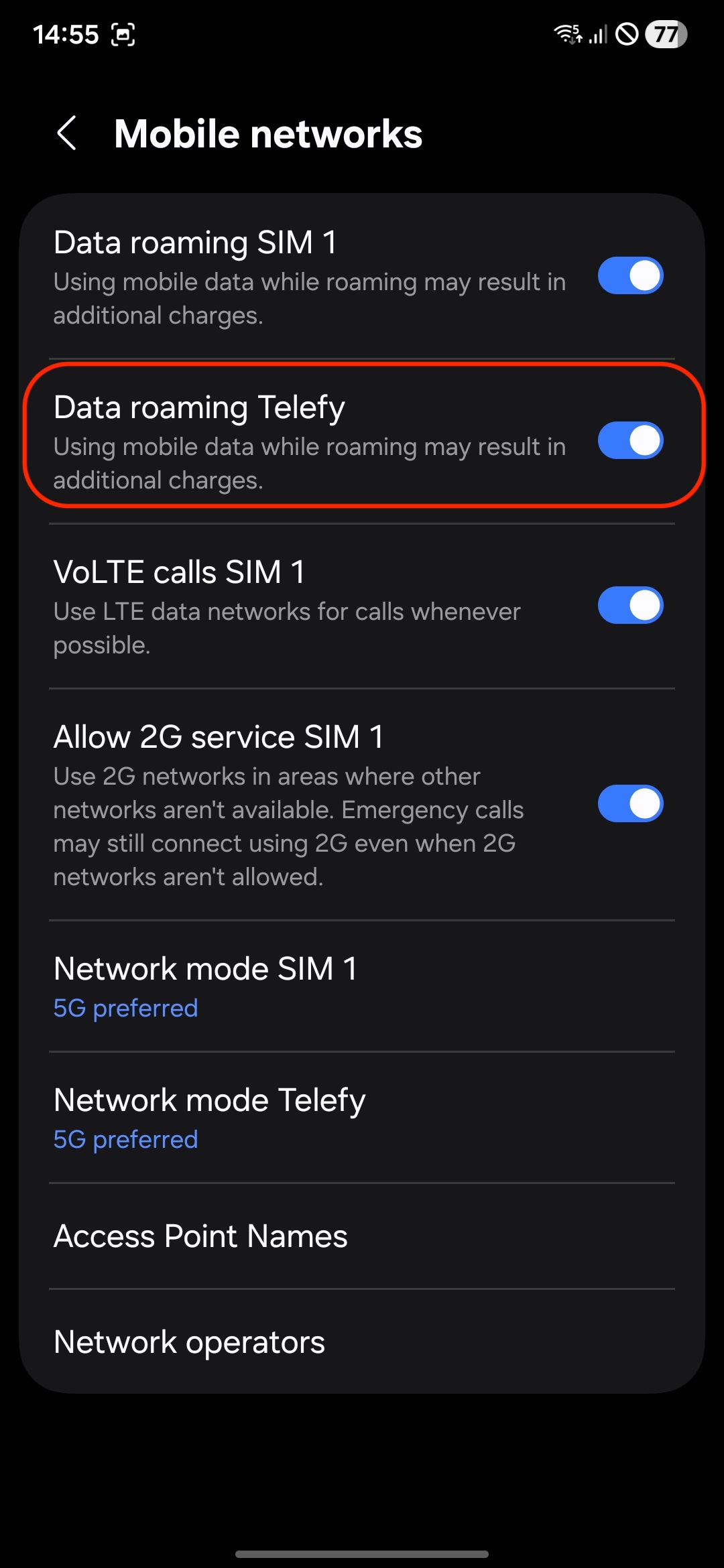 9. Enable Mobile Data: Ensure that mobile data and roaming is turned on for the eSIM.