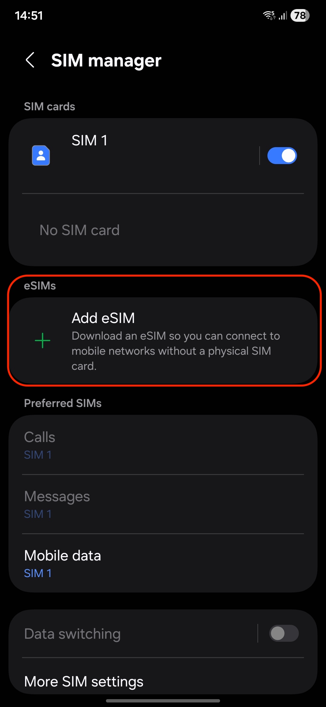 6. Add eSIM: Select "Add eSIM".