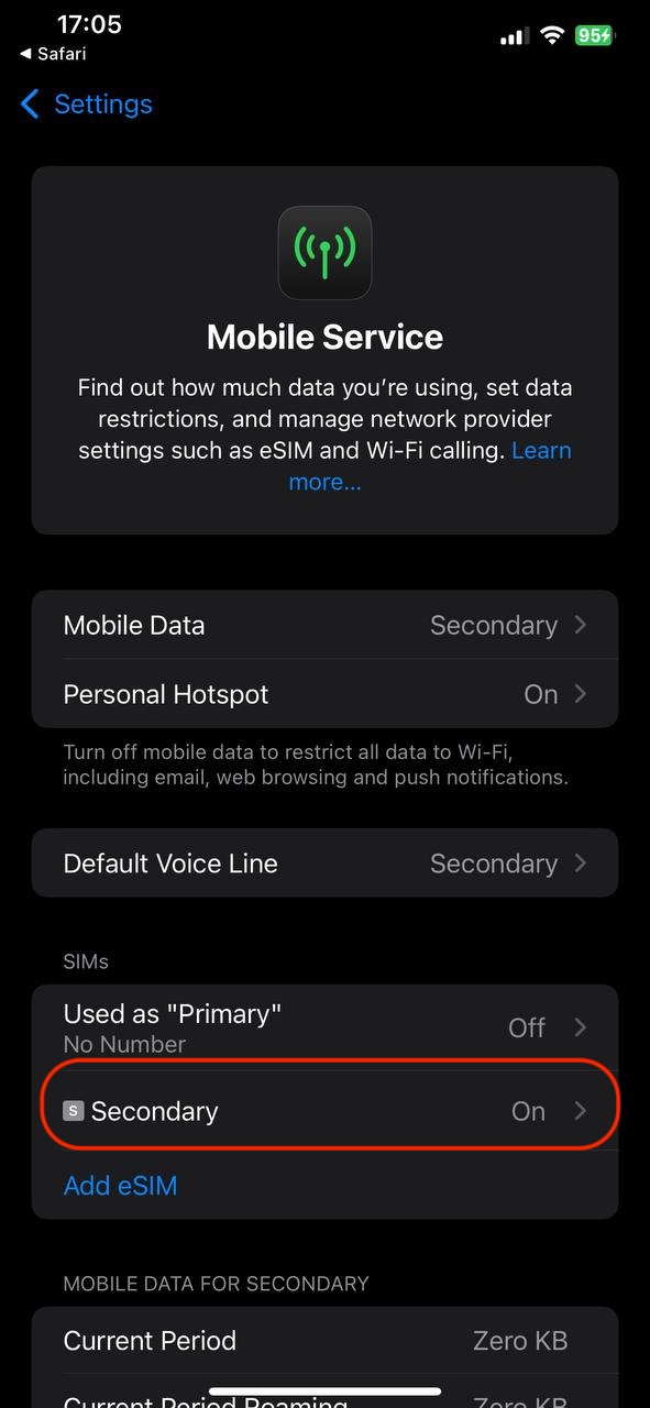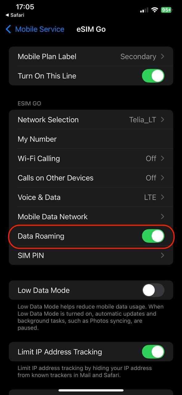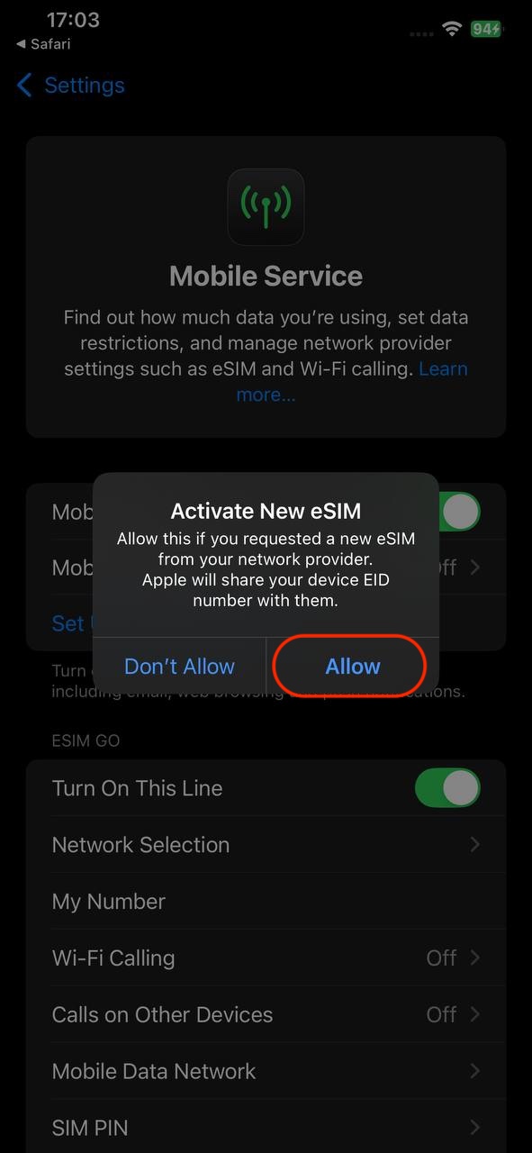 7. Enable Mobile Data: Ensure that mobile data and roaming is turned on for the eSIM.